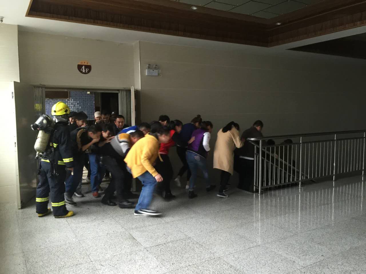 演練分為3個部分。一部分是100多號人在"火災嚴重、煙霧重重"的突發(fā)險情下,從6樓住下緊急有序疏散逃生;一部分是高樓救援昏厥傷人;一部分是滅火操作,熟悉滅火器、消防水槍的 操作方法。通過演練,使廣大員工受到一場別具生面的體驗。