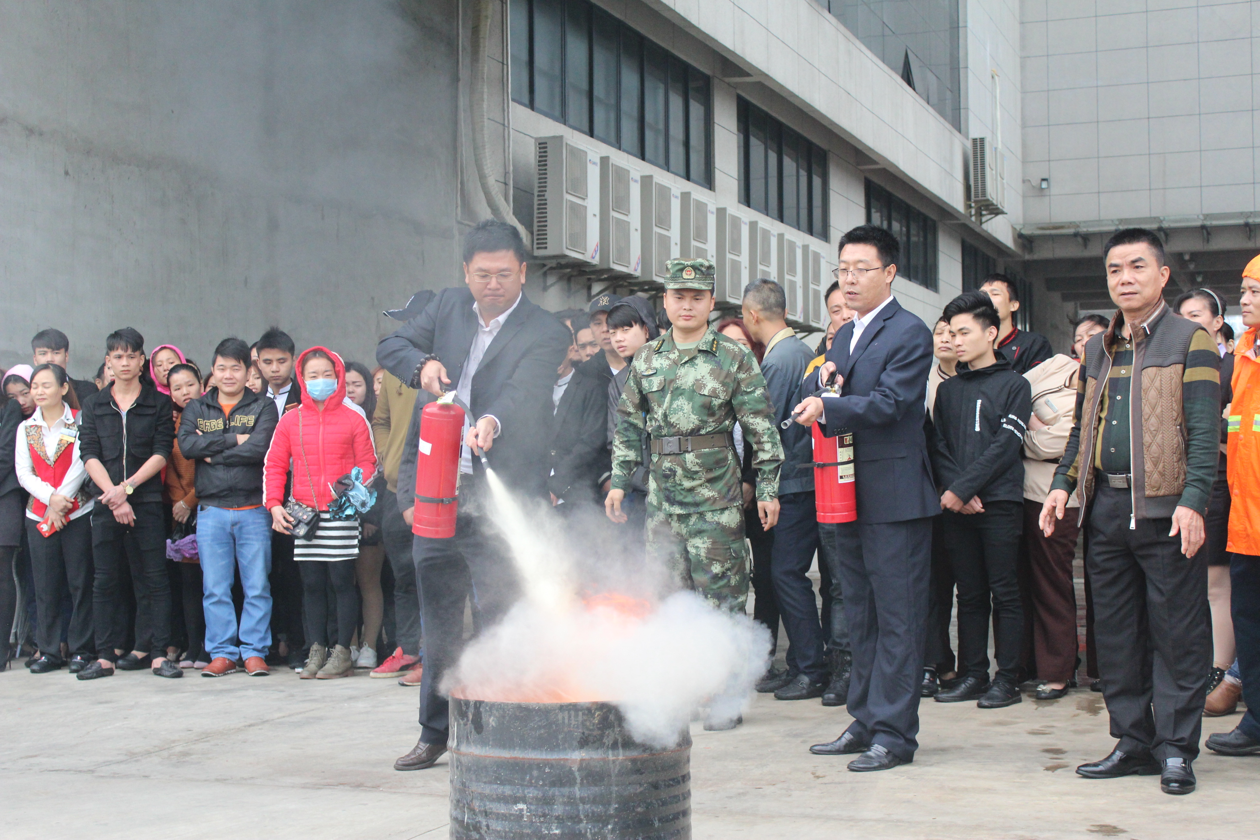 黃隊長在為廣大員工講解滅火器正確的使用方法