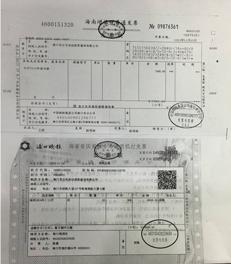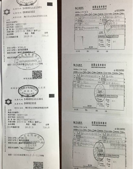 2016年海南日?qǐng)?bào)發(fā)票 銀行轉(zhuǎn)賬回執(zhí)單