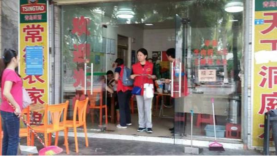 向沿街商鋪發(fā)放雙創(chuàng)宣傳資料