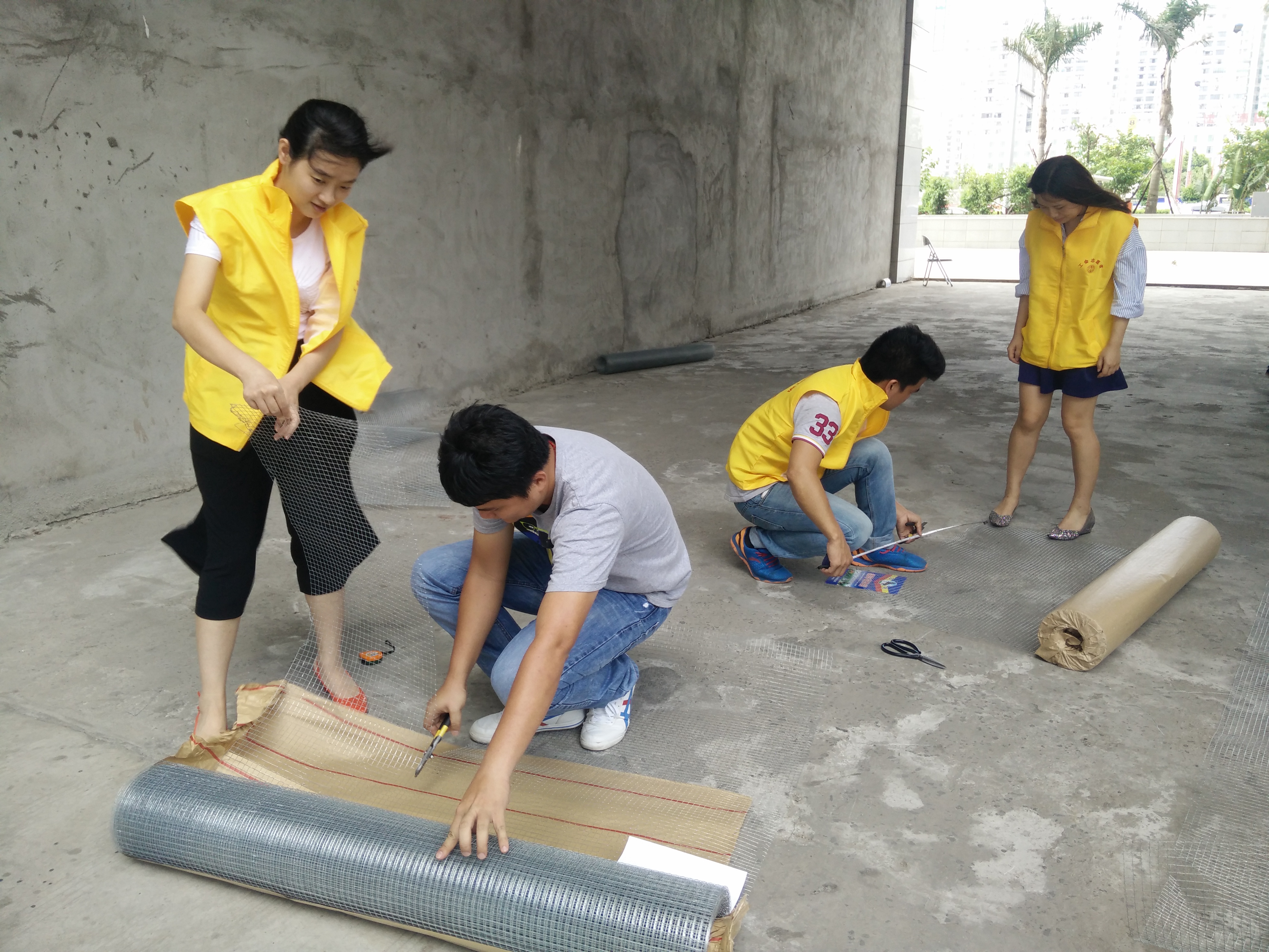 志愿者認(rèn)真安放剪好的鐵絲網(wǎng)