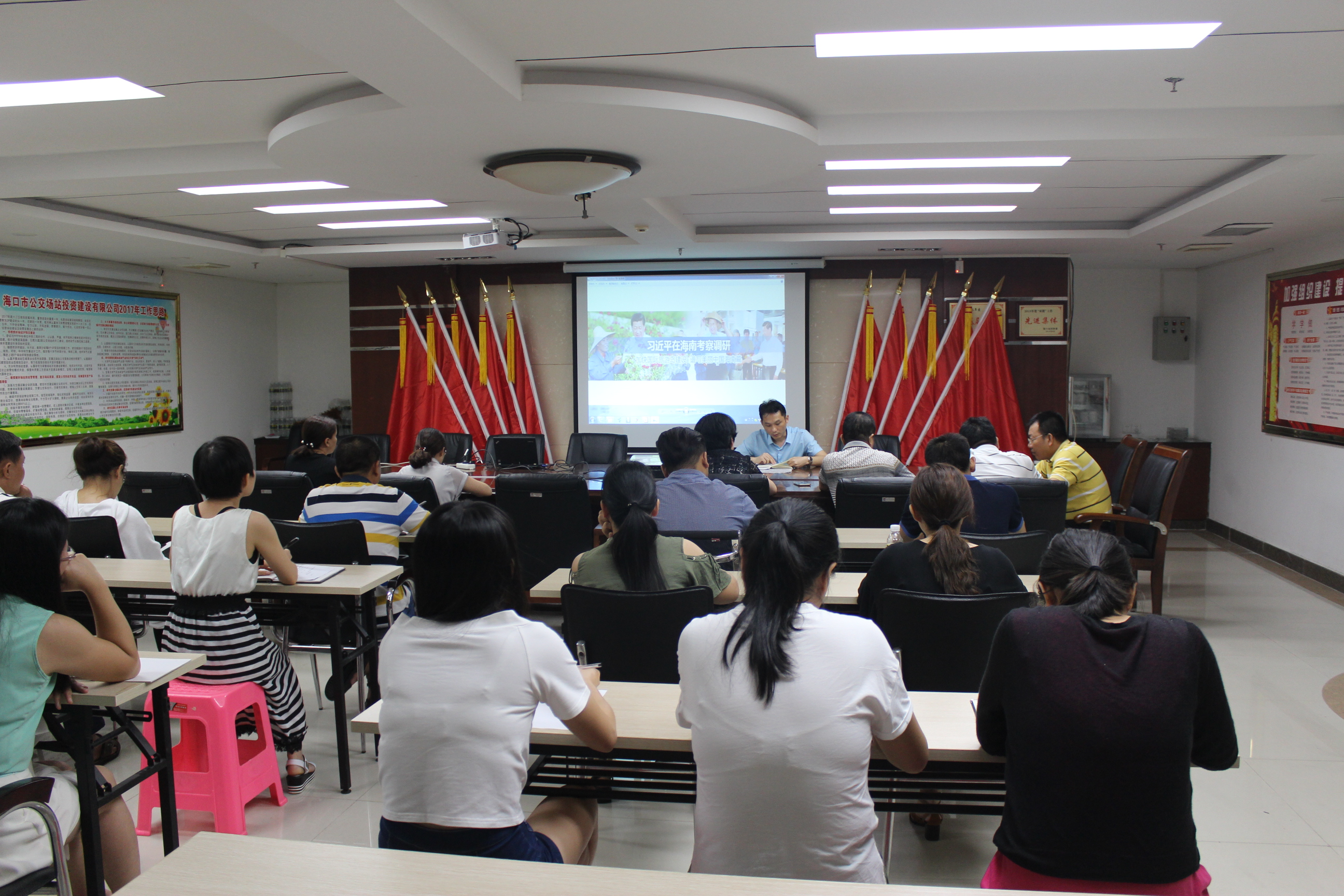 6月20日下午,場(chǎng)站公司總經(jīng)理梁培豐主持召開(kāi)全體干部職工大會(huì),會(huì)議主要傳達(dá)學(xué)習(xí)上午市委召開(kāi)“深入學(xué)習(xí)貫徹習(xí)近平總書(shū)記視察海南時(shí)的重要講話精神建設(shè)美好新海南”大研討大行動(dòng)會(huì)議暨創(chuàng)文迎檢工作動(dòng)員大會(huì)精神,并部署了相關(guān)工作。共25名員工參加了此次會(huì)議。