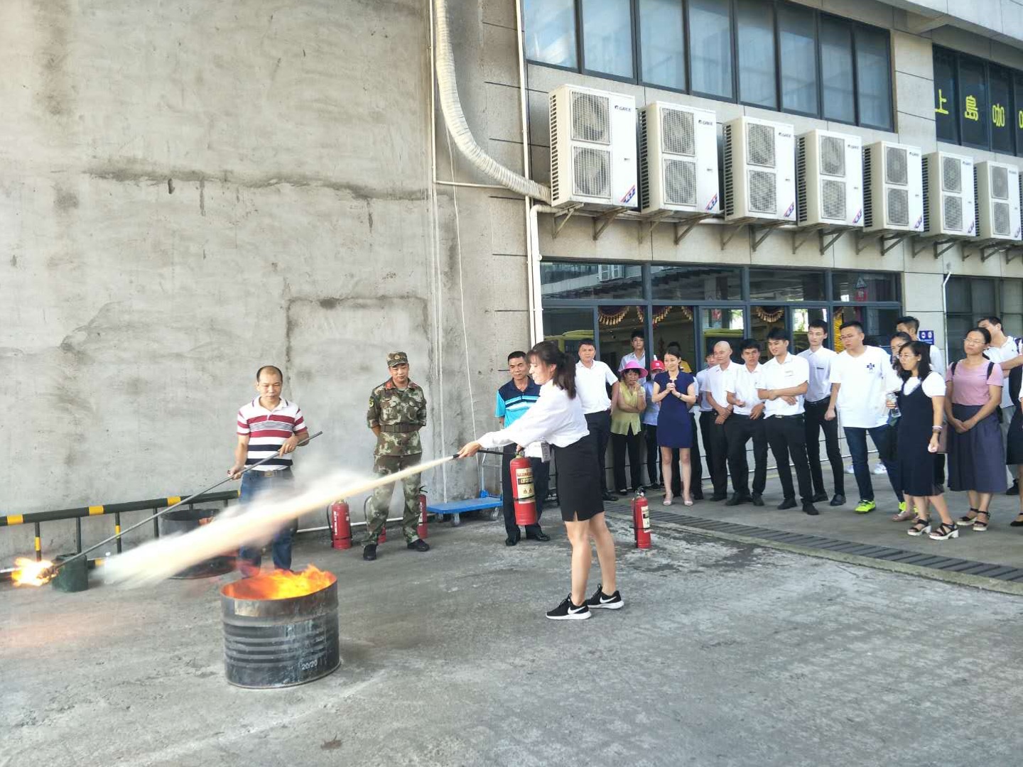 戶外使用滅火器對燃燒的消防桶做滅火實戰(zhàn)演練,由消防官兵對滅火器的使用進行現(xiàn)場講解和示范,參演人員全部進行實際操作演練,正確掌握滅火器的使用方法。