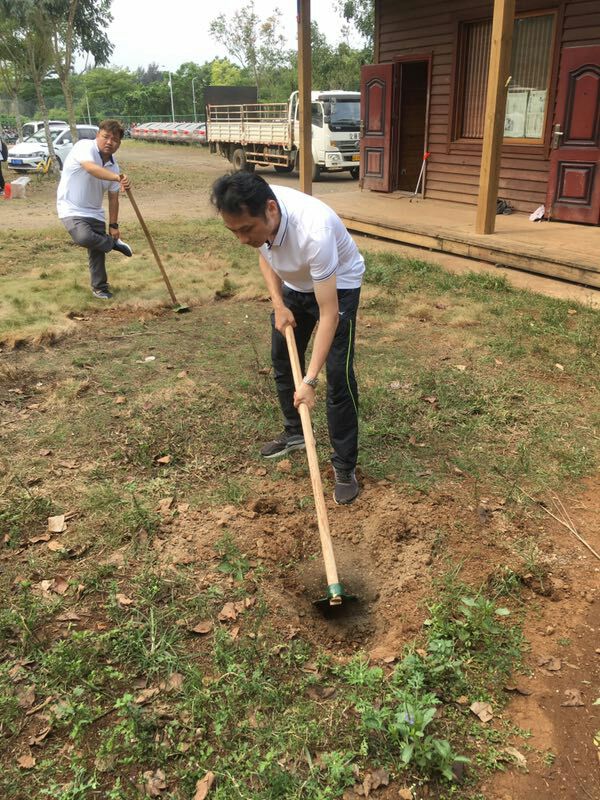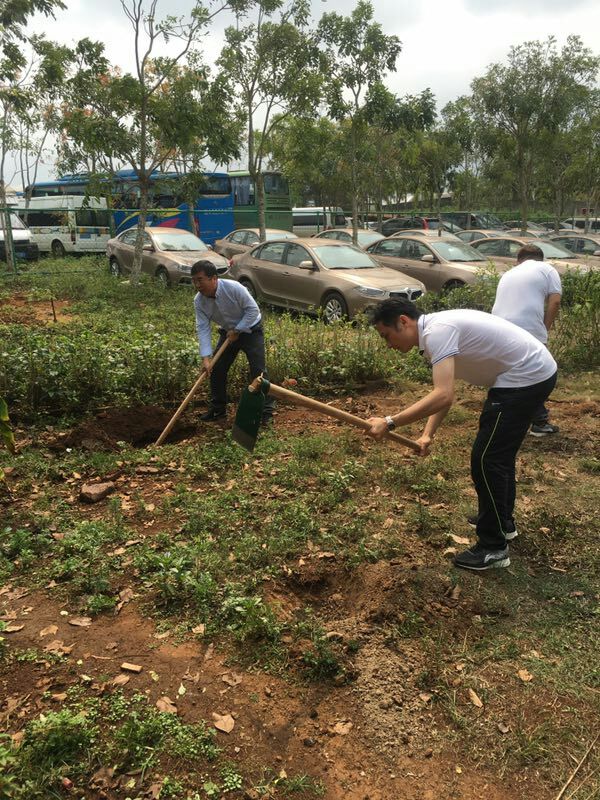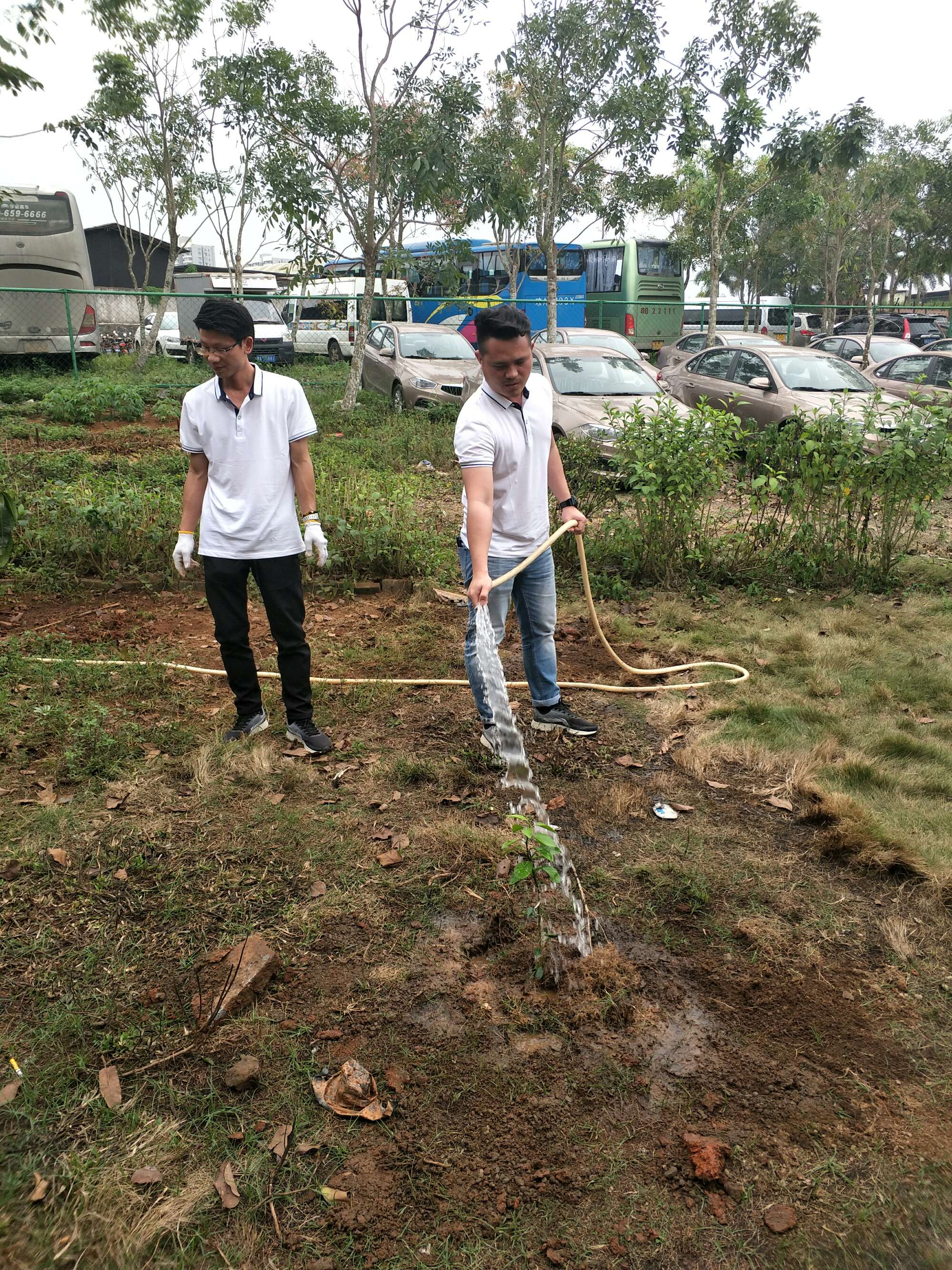 隨后,大家原路徒步返回大樣站,在了解了一些樹木的知識(shí)及植樹的技巧和注意事項(xiàng)后,在植樹區(qū)域兩三人為一小組開始分工合作、互相配合,有的揮揪挖坑、有的扶苗摘種、有的培土澆水,參加植樹的員工們個(gè)個(gè)熱情洋溢、干勁十足,以飽滿的熱情投入到播種綠色的植樹行動(dòng)中。經(jīng)過一個(gè)小時(shí)的辛勤勞動(dòng),共完成種植樹苗19棵。