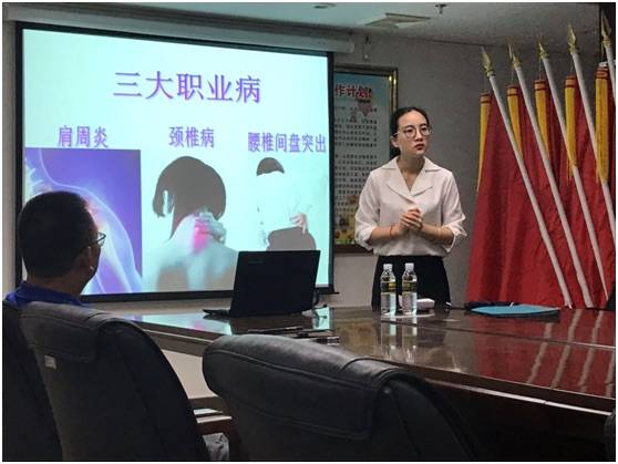 培訓內容:講解和實操了心肺復蘇按壓姿勢、職業(yè)疾病的預防和改善(肩周炎、頸椎病、腰肌勞損等)、常見慢性病的防治(高血壓、糖尿病、心臟病、冠心病等)。