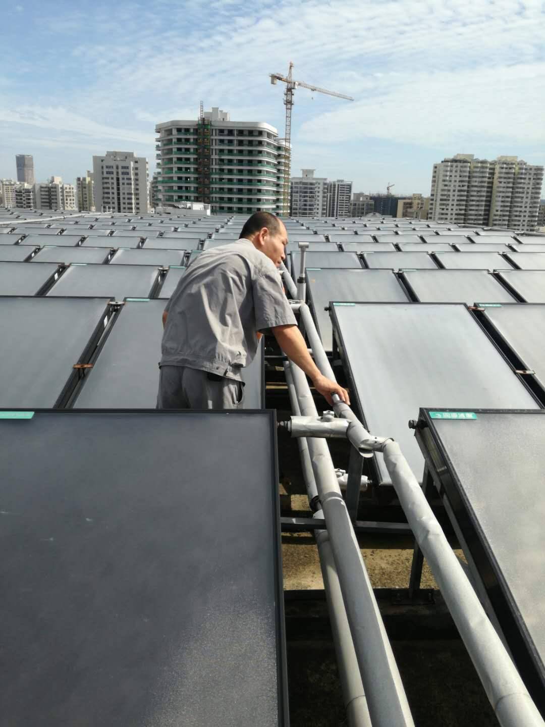5、檢查樓頂設(shè)施太陽能板并緊固