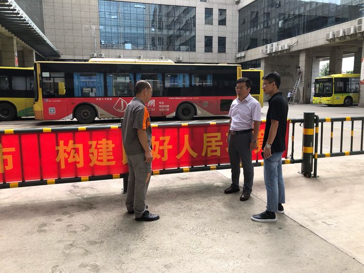 2019年9月5日上午,場(chǎng)站公司董事長(zhǎng)梁昌偉、副總經(jīng)理陳河山,一行來(lái)到東站公交樞紐站視察站內(nèi)“鞏衛(wèi)”工作,以及站內(nèi)交通組織優(yōu)化項(xiàng)目工程施工,并提出幾點(diǎn)要求:
