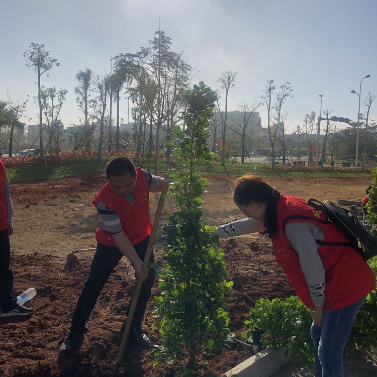在支部書記梁昌偉的帶領下,黨員志愿者積極投入到義務植樹活動中,有的揮鏟挖坑,有的為樹苗培土,大家齊動手,互相配合,確保栽一棵活一棵,植一片綠一方,植樹現(xiàn)場一派熱火朝天的繁忙景象。經(jīng)過一個小時的辛勤勞動,場站公司黨員志愿者們共完成種植樹苗40余棵。