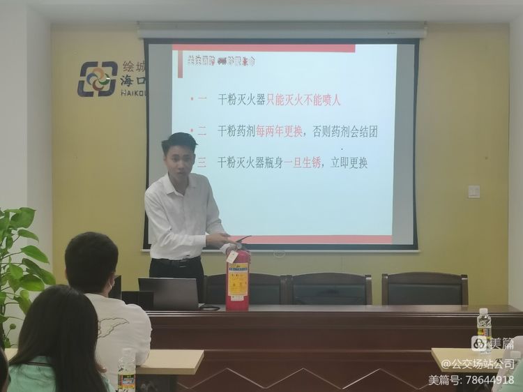 國慶將至,為做好節(jié)前消防安全宣傳教育工作,同時(shí)為迎接黨的二十大勝利召開,營造良好的消防安全環(huán)境,提升站內(nèi)人員消防安全素質(zhì)和防火防災(zāi)能力,9月29日上午,海口公交場站公司東站公交樞紐站組織開展了消防安全知識(shí)宣傳培訓(xùn)工作,站內(nèi)全體工作人員及租戶代表參加培訓(xùn)。