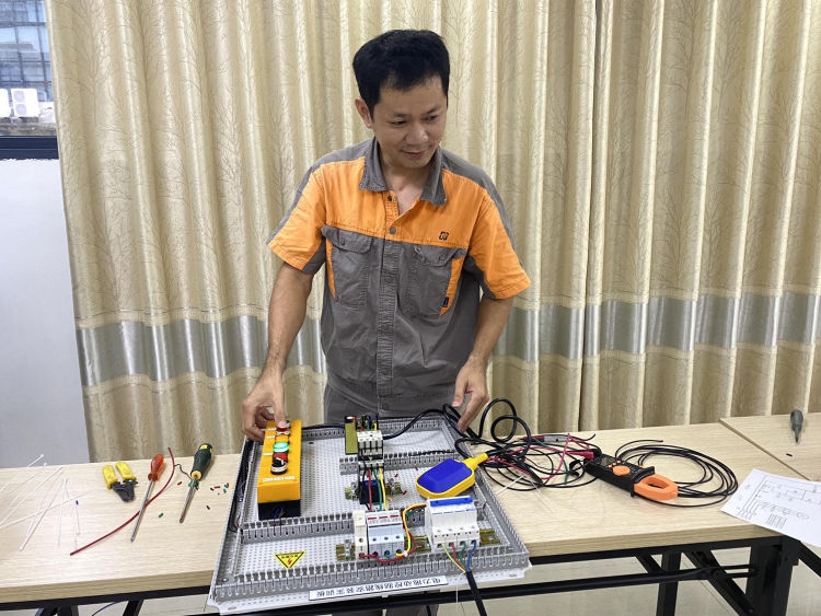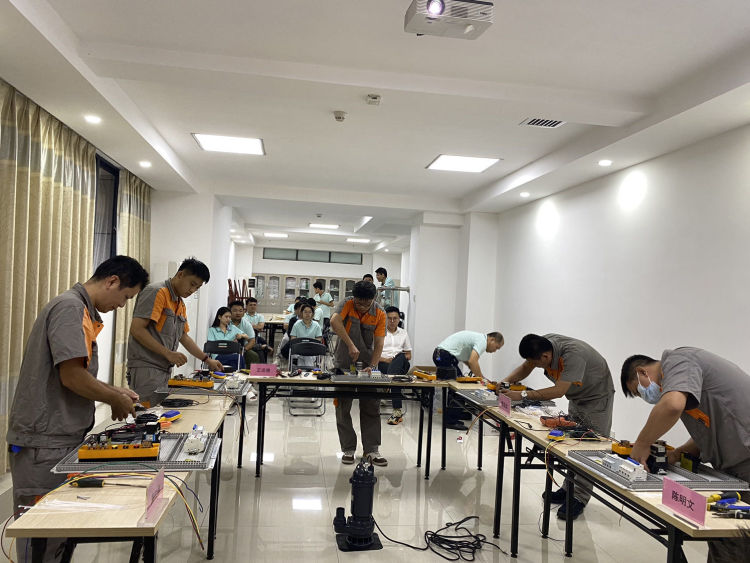 第一項(xiàng):設(shè)電工理論考試、技能實(shí)操兩部分,其中理論考試實(shí)行線下答題,實(shí)操完成三相污水泵控制回路接線,實(shí)現(xiàn)手動(dòng)、自動(dòng)控制功能,公司領(lǐng)導(dǎo)評(píng)委組閱卷評(píng)分加現(xiàn)場實(shí)際操作評(píng)分,筆試成績*40%,實(shí)操成績*60%,兩項(xiàng)分?jǐn)?shù)相加得出總分。
