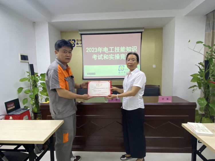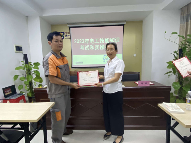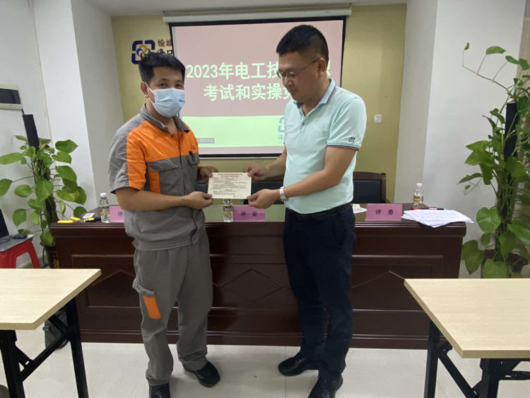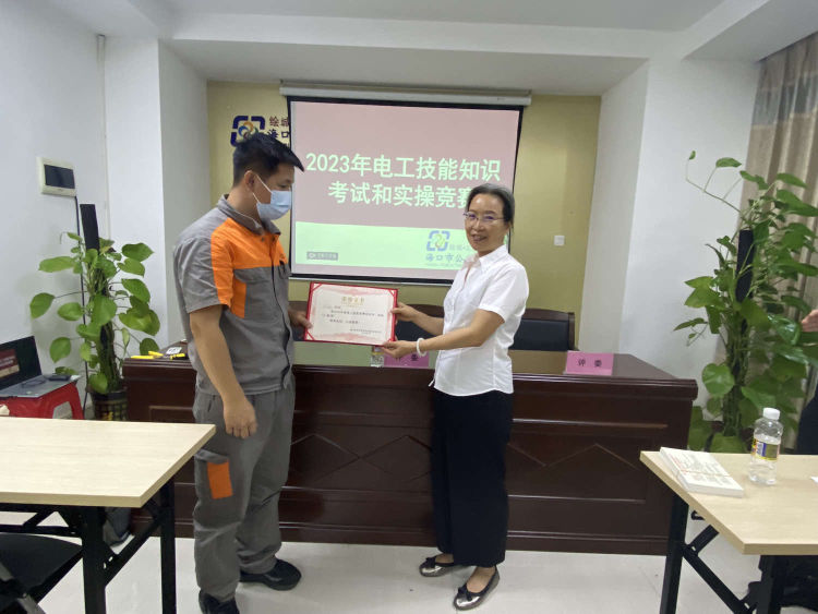 經(jīng)過激烈的角逐,本次大賽共評(píng)出電工一等獎(jiǎng)1名、二等獎(jiǎng)1名、三等獎(jiǎng)1名,本次競賽由副總經(jīng)理張潔文為獲獎(jiǎng)電工頒發(fā)證書。