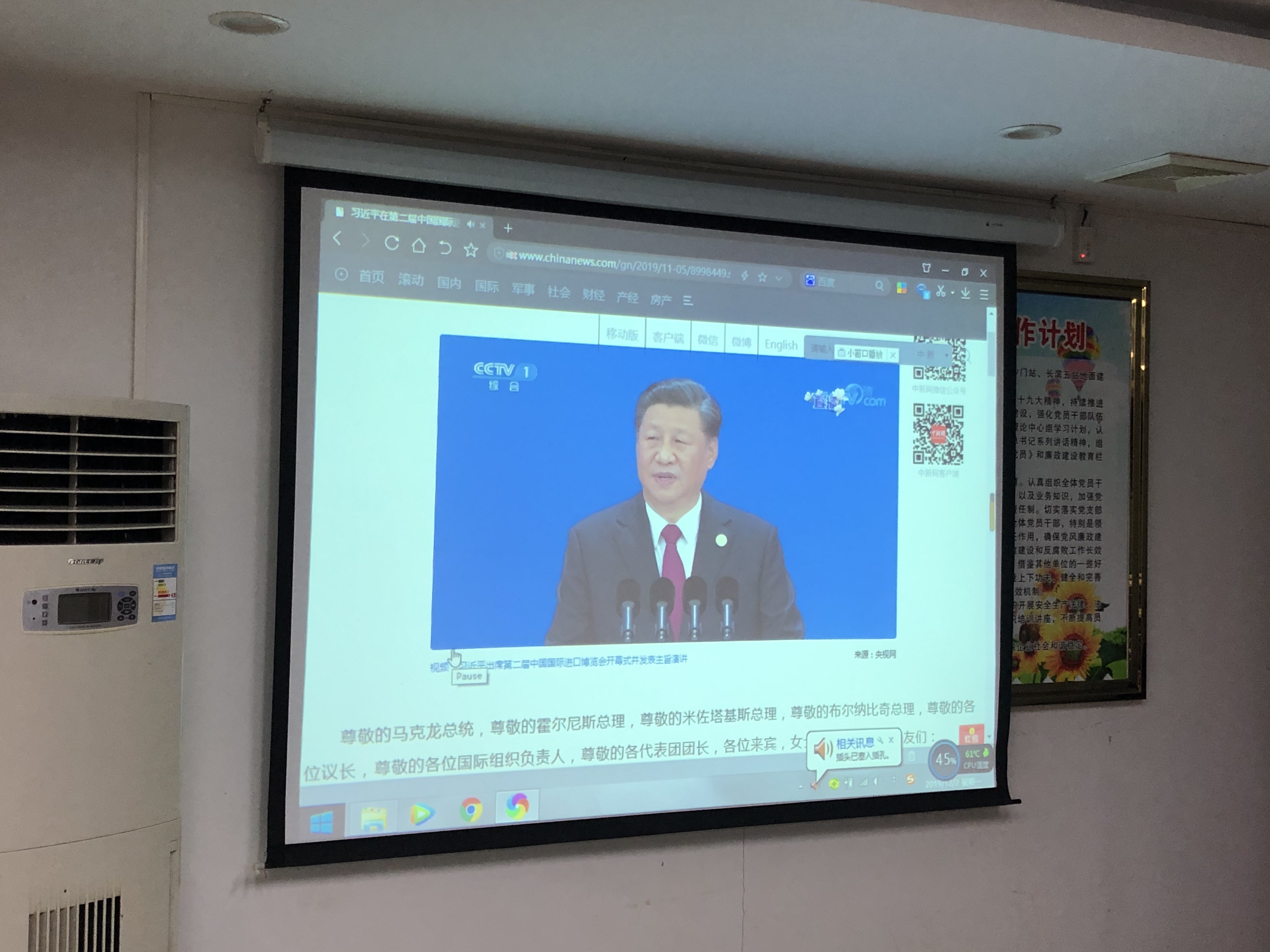 首先,通過中國新聞網(wǎng)實錄第二屆中國國際進口博覽會現(xiàn)場視頻播放,大家集中學習了《習近平在第二屆中國國際進口博覽會開幕式上的主旨演講》的全部內(nèi)容。在主旨演講中,習近平主席鄭重宣示了中國持續(xù)推進更高水平對外開放的5個方面舉措,鮮明體現(xiàn)了新時代中國的開放自信,彰顯了以實際行動推動建設開放型世界經(jīng)濟的責任擔當。