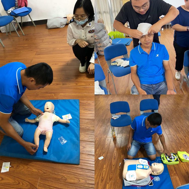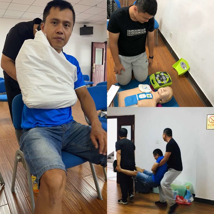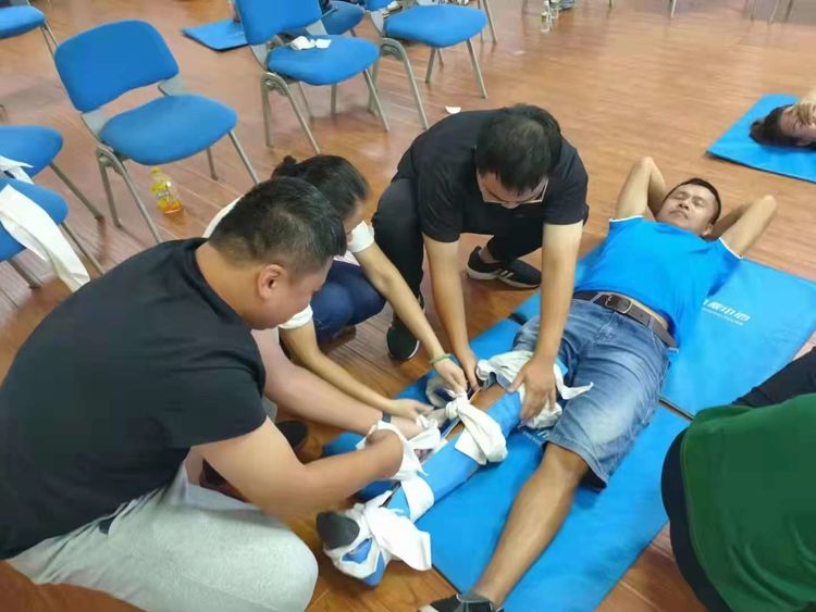 培訓(xùn)課上,授課老師分別從人工呼吸練習(xí)、成人按壓與通氣綜合練習(xí)、氣道異物梗阻解救練習(xí)、創(chuàng)傷理論傷口處理及螺旋包扎方法、骨折固定術(shù)講解及頭鎖胸背鎖固定術(shù)講解方面作了詳細講解,通過現(xiàn)場模擬演示急救方法和急救要點,手把手指導(dǎo)實踐操作。參加培訓(xùn)的員工進行了現(xiàn)場模擬實操考試,并順利通過了考核,全員獲得了現(xiàn)場急救員合格證。